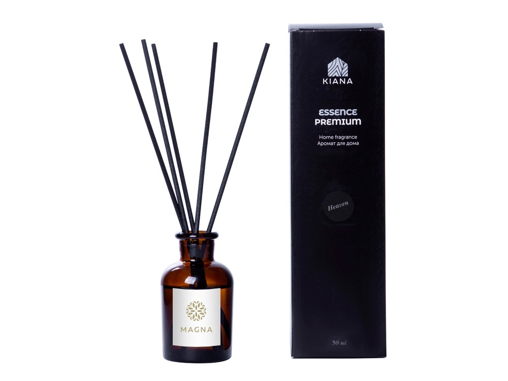 Аромадиффузоры бренда KIANA создают приятную атмосферу спокойствия, которая помогает отдохнуть и настроиться на позитивные мысли и эмоции. Heaven — часть серии Essence Premium, премиальной линейки KIANA, которая объединяет ароматы для дома повышенной концентрации. Это воздушный цветочный аромат, в который идеально вплетены свежие цитрусовые ноты с чарующим сандалом. Объём диффузора 50 мл. Его будет достаточно для умеренного поддержания аромата в комнате до 15м2 в течение двух месяцев использования. Насыщенность аромата регулируется количеством используемых фибровых палочек. • Создаст приятную атмосферу спокойствия • Воздушный и чарующий • Хватит на два месяца использования Essence Premium предлагает вашему вниманию насыщенные и глубокие ароматические композиции, погружающие в негу и блаженство. Пирамида аромата состоит из верхних, средних и базовых нот, которые освежат воздух в вашем доме и создадут приятную атмосферу.