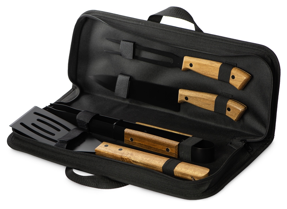 BBQ набор из акации, черный (P) купить оптом и в розницу с нанесением логотипа в Москве