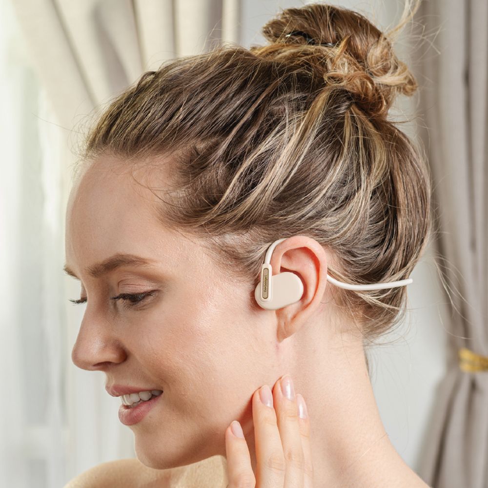 Беспроводные наушники OpenAir Arc, бежевые купить оптом и в розницу с нанесением логотипа в Москве