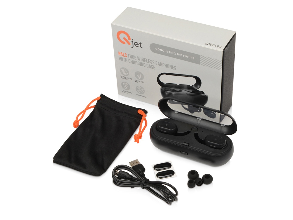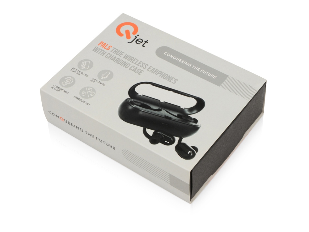 Беспроводные наушники Pals от Qjet - это современные технологии в компактной привлекательной форме. Наушники порадуют качественным объемным звучанием и легкой эргономичной формой, а благодаря зарядному кейсу суммарное время воспроизведения достигает 8 часов. Зарядный чехол-повербанк легко помещается в карман куртки, сумки или рюкзака. Поддерживают режим hands-free. Управление звонками и воспроизведением музыки осуществляется через многофункциональную кнопку на наушнике. Каждый из 2 наушников может быть декорирован любым изображением с помощью заливки смолой. В комплекте 2 наушника, зарядный кейс, набор сменных амбушюр, мешочек, зарядный кабель, подробная инструкция и 2 стикера-накладки на случай ,если заливка смолой не требуется. Основные характеристики: — Качественное звучание до 8 ч. — Легкие и комфортные наушники, портативный зарядный кейс. — Hands free, моно и стерео режимы. — Заливка смолой любого изображения на каждом наушнике.