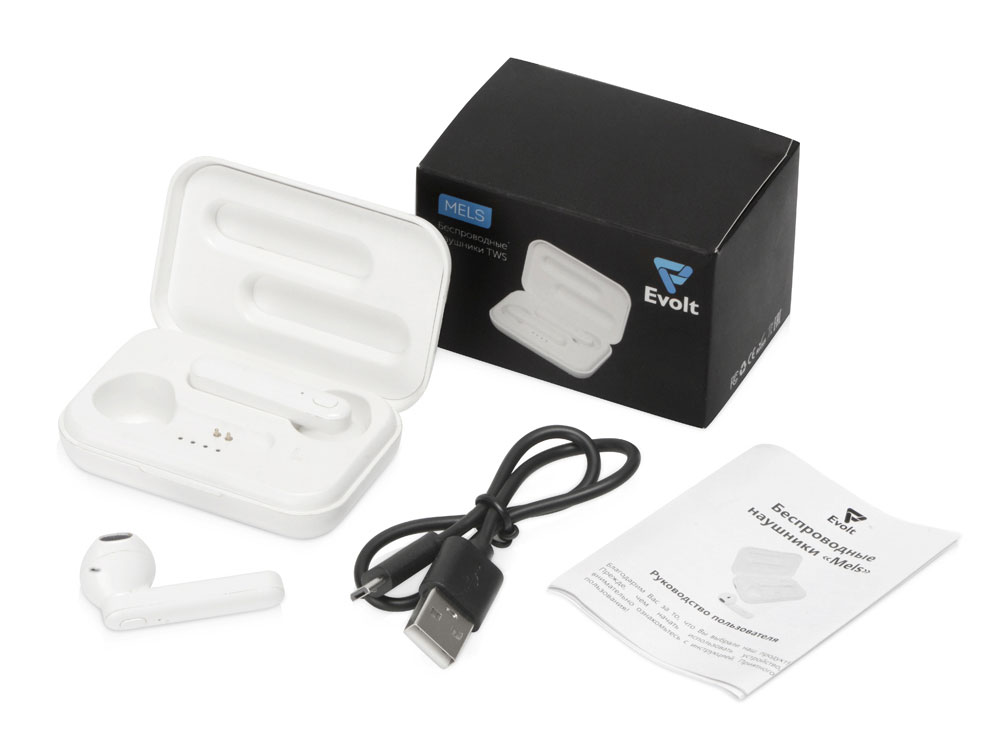 Беспроводные наушники Mels бренда Evolt обеспечивают до 16 часов суммарного воспроизведения музыки и работают на расстоянии до 10 метров от сопряженного с ним смартфона или иного гаджета. Зарядный чехол имеет разъем mini USB, внутри которого есть шкала заряда, состоящая из четырех делений. - время полной зарядки чехла – 1-2 часа - время воспроизведения – 4 часа (16 часов с чехлом) - лаконичный дизайн наушников и кейса - можно использовать в качестве гарнитуры - каждый наушник имеет кнопку управления, двойной щелчок на которую вызывает последний набранный номер, а одинарное нажатие – переключает на следующую дорожку