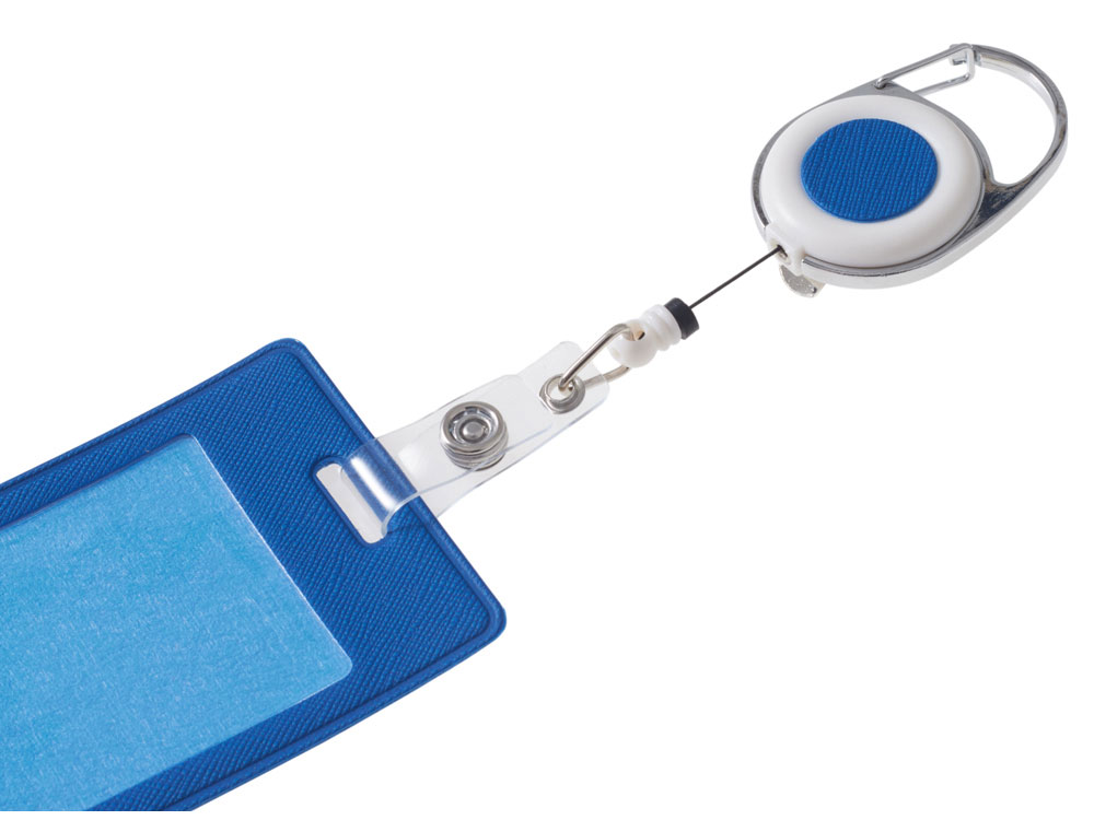 Бейдж с рулеткой-карабин Favor, синий