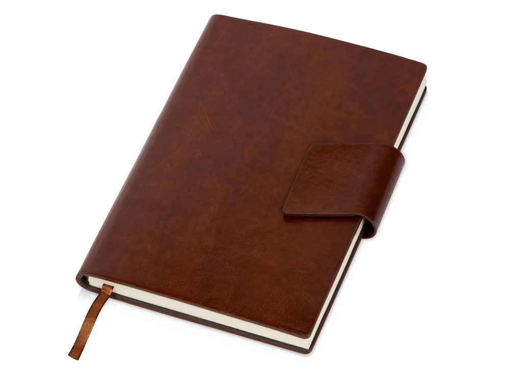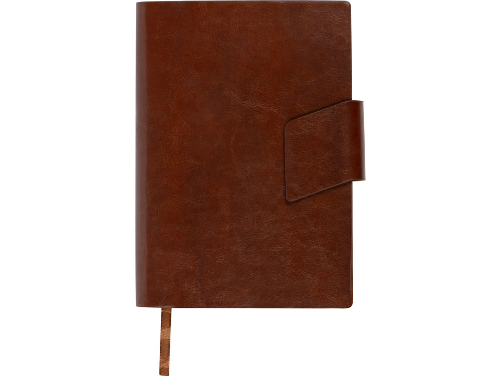 Бизнес блокнот А5 Monoi с клапаном, твердая обложка, 128 листов, коричневый купить оптом и в розницу с нанесением логотипа в Москве