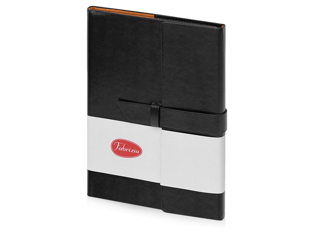 Бизнес-блокнот А5 с клапаном Fabrizio, 80 листов, черный (P) купить оптом и в розницу с нанесением логотипа в Москве