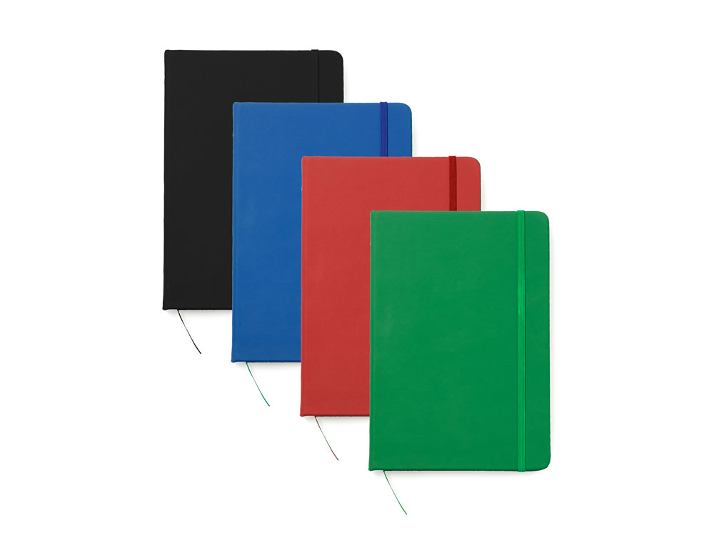 Блокнот формата А5 в обложке из искусственной кожи. Закладка и резинка. 100 листов в линейку.