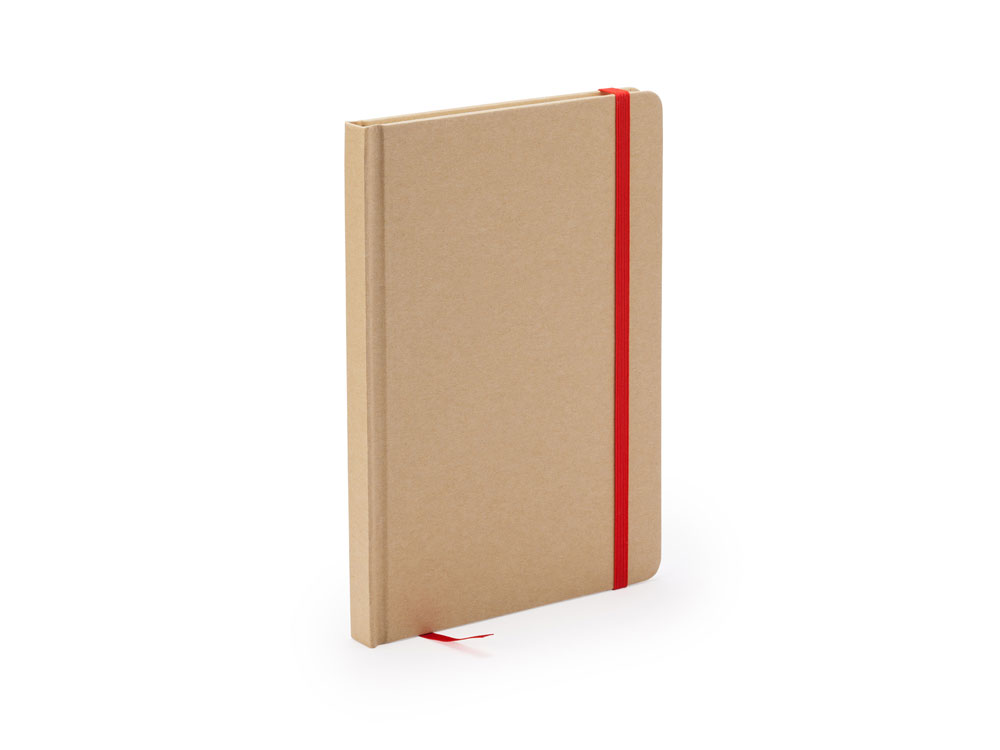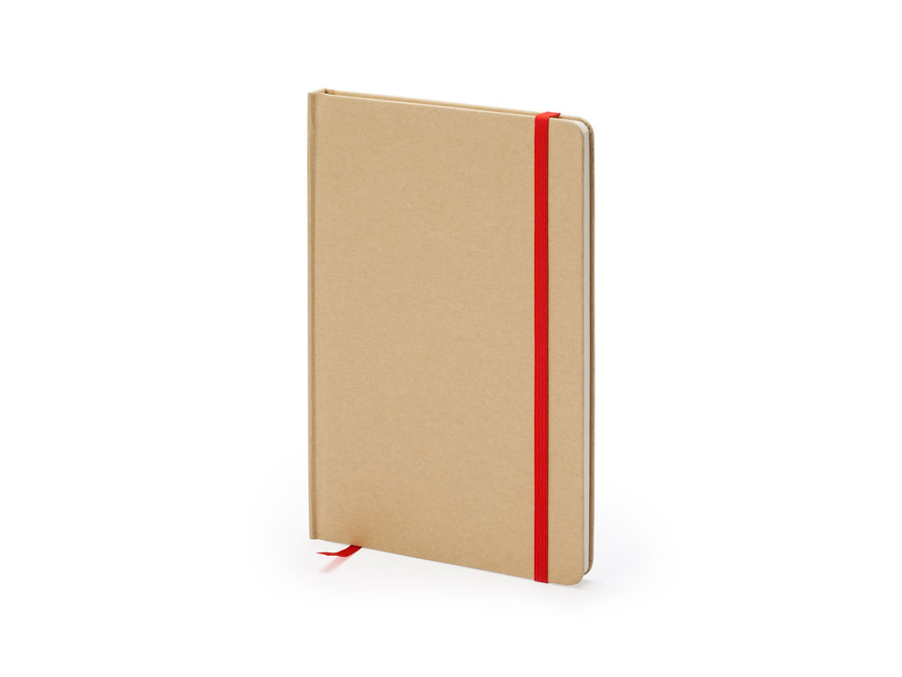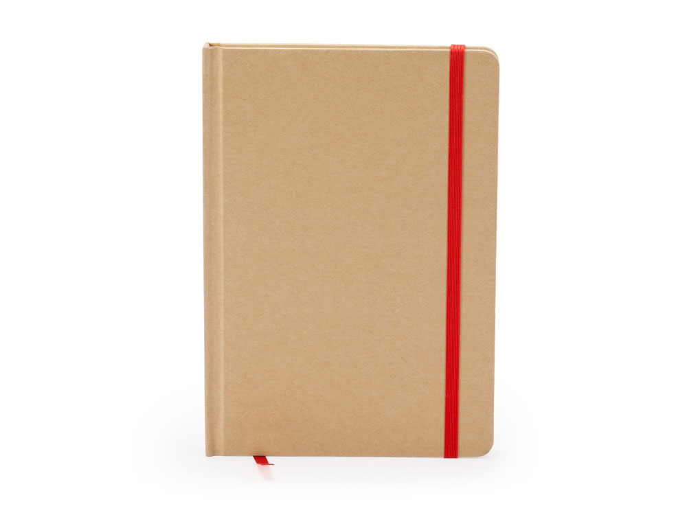 Блокнот А5 ESTELA с контрастной резинкой, бежевый/красный купить оптом и в розницу с нанесением логотипа в Москве