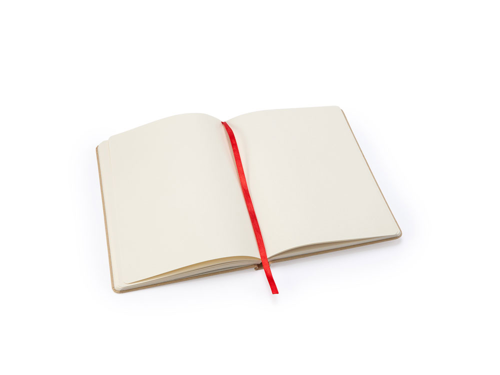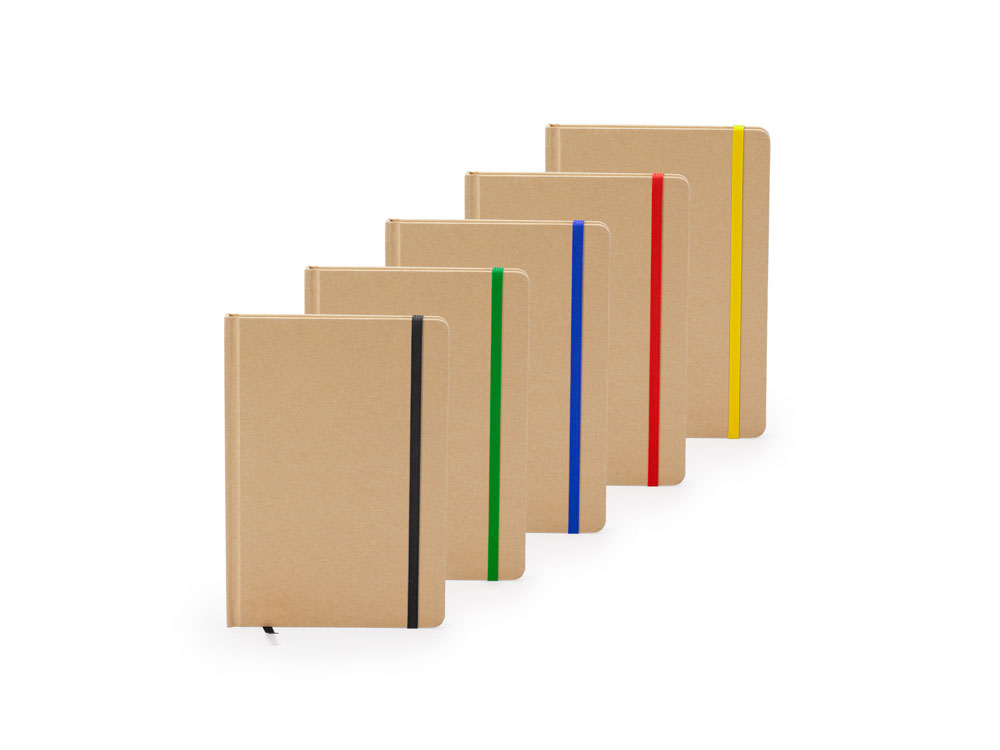 Блокнот формата А5. Твердая обложка из переработанного картона. Закладка и цветная резинка. 100 простых листов.