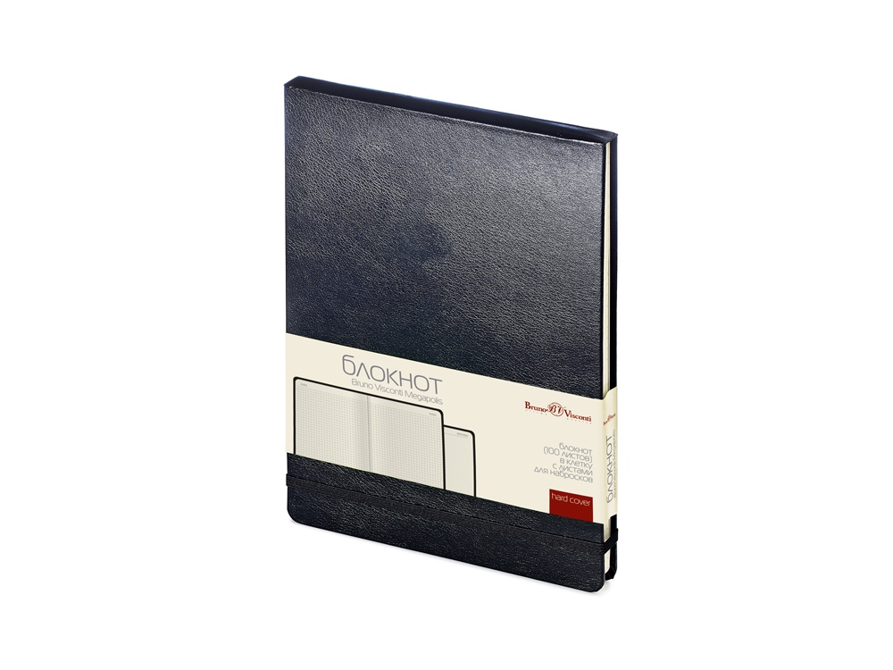 Вертикально ориентированный блокнот для записей. Линовка блока - клетка, 8 последних листов блока имеют вертикальную и горизонтальную перфорацию, которая позволяет легко отрывать листы не нарушая целостности блока. В блокноте предусмотрен нелинованный раздел для эскизов и набросков. На внутренней стороне задней обложки есть удобный карман для визиток и записок. Твердый переплет предохраняет блокнот от механических повреждений. Резинка фиксирует блокнот в закрытом виде. Блокнот подойдет для записей как в офисе, так и на выездных совещаниях. Готов к персонализации.