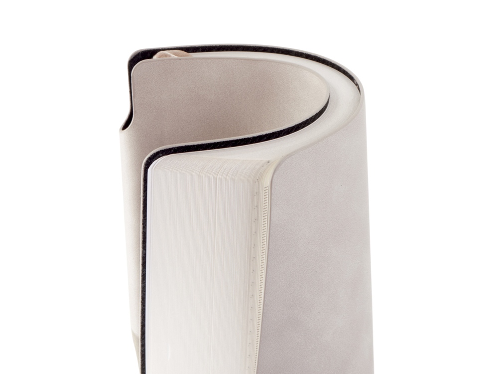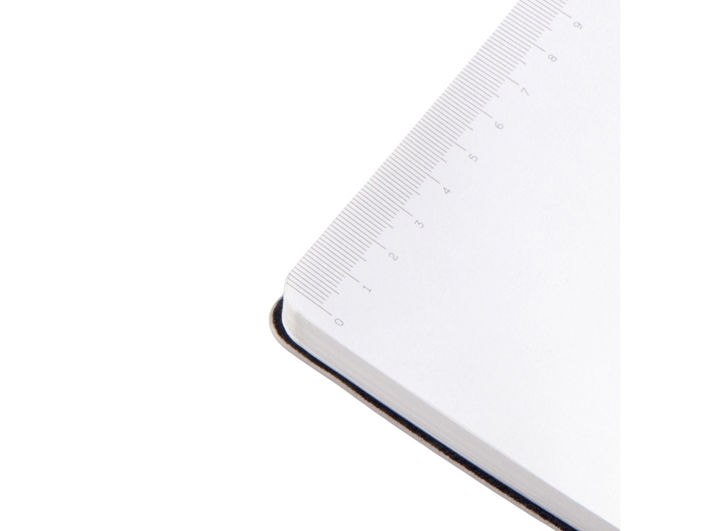 Этот блокнот идеально сочетает в себе функциональность и удобство использования. Гибкая текстурная обложка, напоминающая замшу, делает блокнот тактильно приятным. Срез в цвет обложки добавляет блокноту элегантности. С этим блокнотом ручка всегда будет под рукой, - корешок имеет расстояние до блока и специальный вырез, позволяющий разместить ручку. Внутри блокнота 96 листов кремовой бумаги повышенной плотности 80 г/м2 с FSC сертификатом. Линовка основного блока в линейку, в конце по 4 страницы в клетку, в точку и нелинованные + 1 страница с линейкой. - ляссе и срез в тон обложки; - формат А5; - бумага с сертификатом ответственного лесопользования FSC.