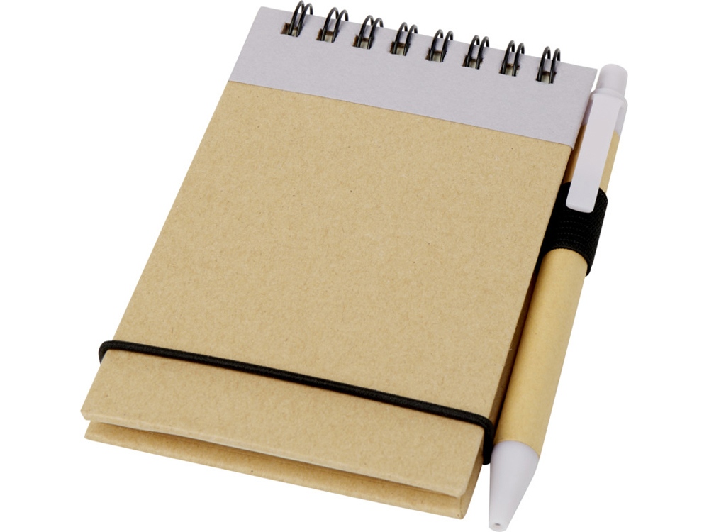 Записывать быстрые идеи легко с блокнотом Zuse recycled jotter с ручкой подходящего цвета. Маленький блокнот содержит 40 линованных листов A7 из эталонной переработанной бумаги, поэтому он хорошо помещается в любой маленькой или большой сумке, его легко держать в руках, и, кроме того, это экологичный выбор. Доступны различные варианты печати для нанесения любого логотипа на внешнюю сторону твердой обложки. Переработанная бумага.