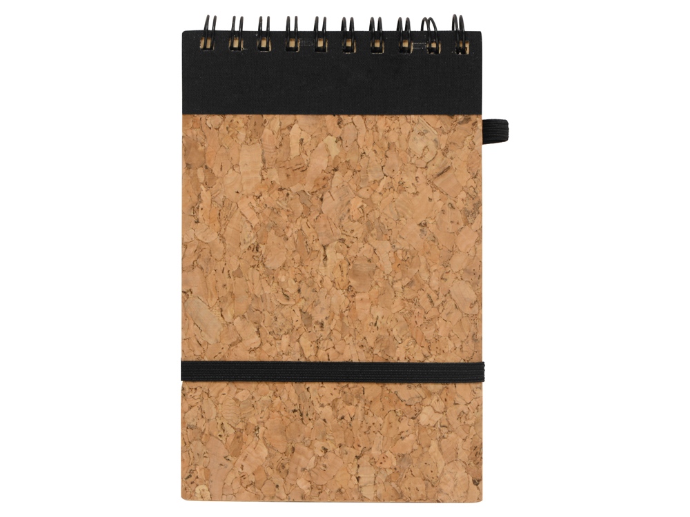 Оригинальный блокнот с обложкой из пробки и картона, а также блоком из переработанной бумаги. Петля для ручки и горизонтальная резинка расширяют функциональность.