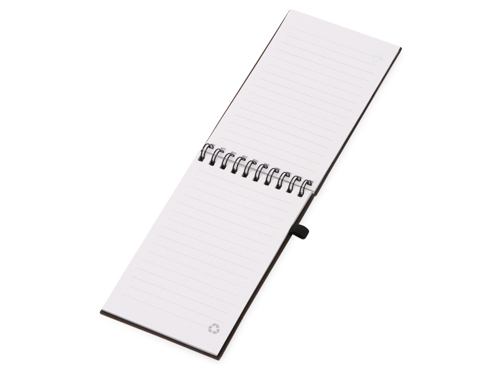 Оригинальный блокнот с обложкой из пластика и кофейного жмыха, а также блоком из переработанной бумаги. Петля для ручки и горизонтальная резинка расширяют функциональность.