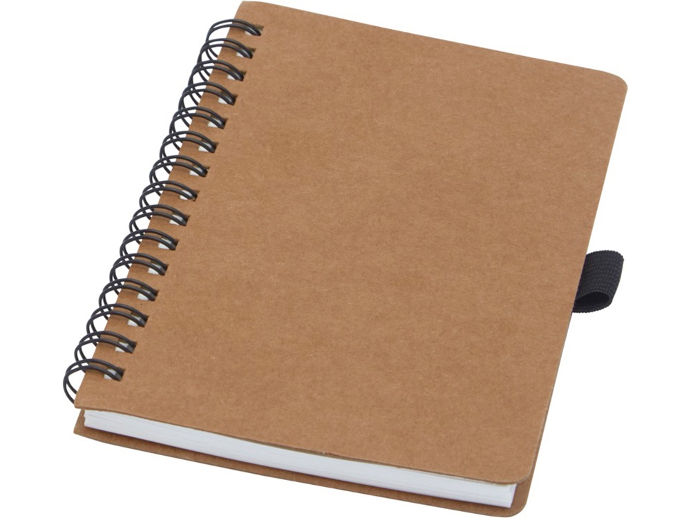 Блокнот Cobble на пружине, формат A5, изготовленный из переработанного картона, с листами из каменной бумаги, натуральный купить оптом и в розницу с нанесением логотипа в Москве