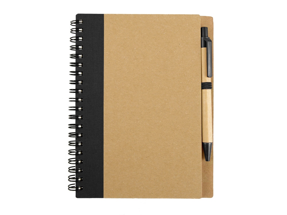 Блокнот с 60 листами переработанной бумаги 70 г/м2 и картонной ручкой в цвет блокнота.