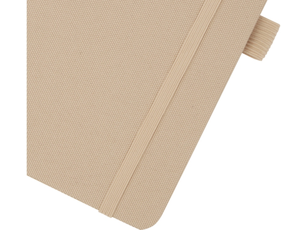 Блокнот формата А5 с обложкой из переработанного ПЭТ. Содержит 80 листов в линию плотностью 70 г/м², изготовленных из переработанной бумаги, с петлей для ручки и лентой-закладкой. Может быть дополнен шариковой ручкой Honua 107757 из переработанного ПЭТ. Переработанный PET пластик. FSC Recycled 100% P7 CU-COC-877277.
