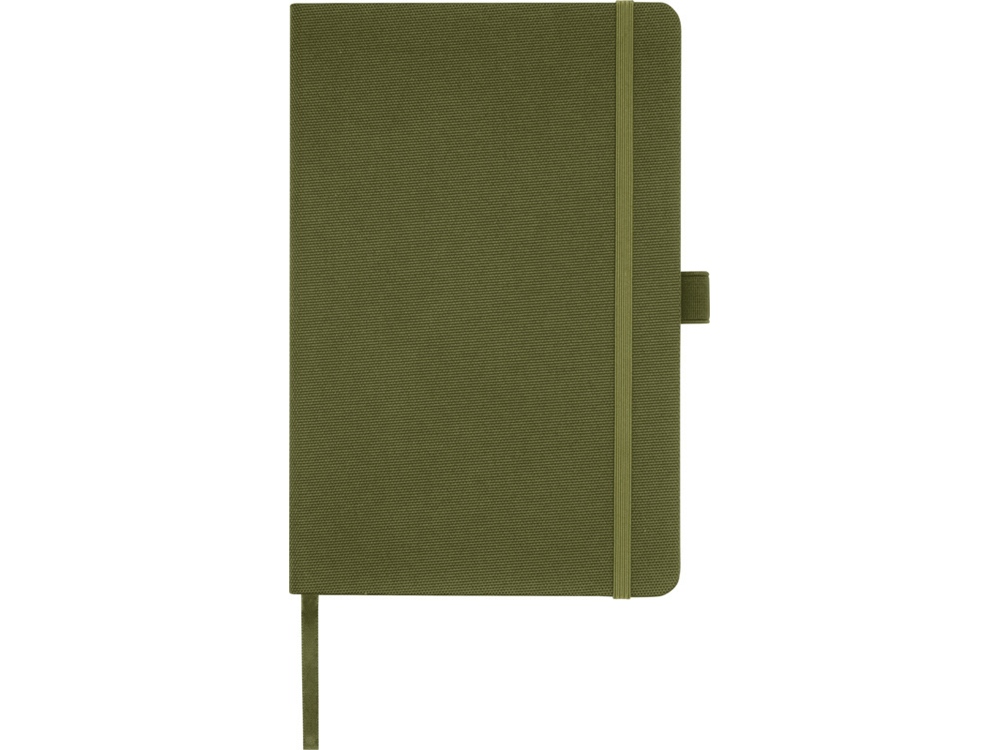 Блокнот формата А5 с обложкой из переработанного ПЭТ. Содержит 80 листов в линию плотностью 70 г/м², изготовленных из переработанной бумаги, с петлей для ручки и лентой-закладкой. Может быть дополнен шариковой ручкой Honua 107757 из переработанного ПЭТ. Переработанный PET пластик. FSC Recycled 100% P7 CU-COC-877277.