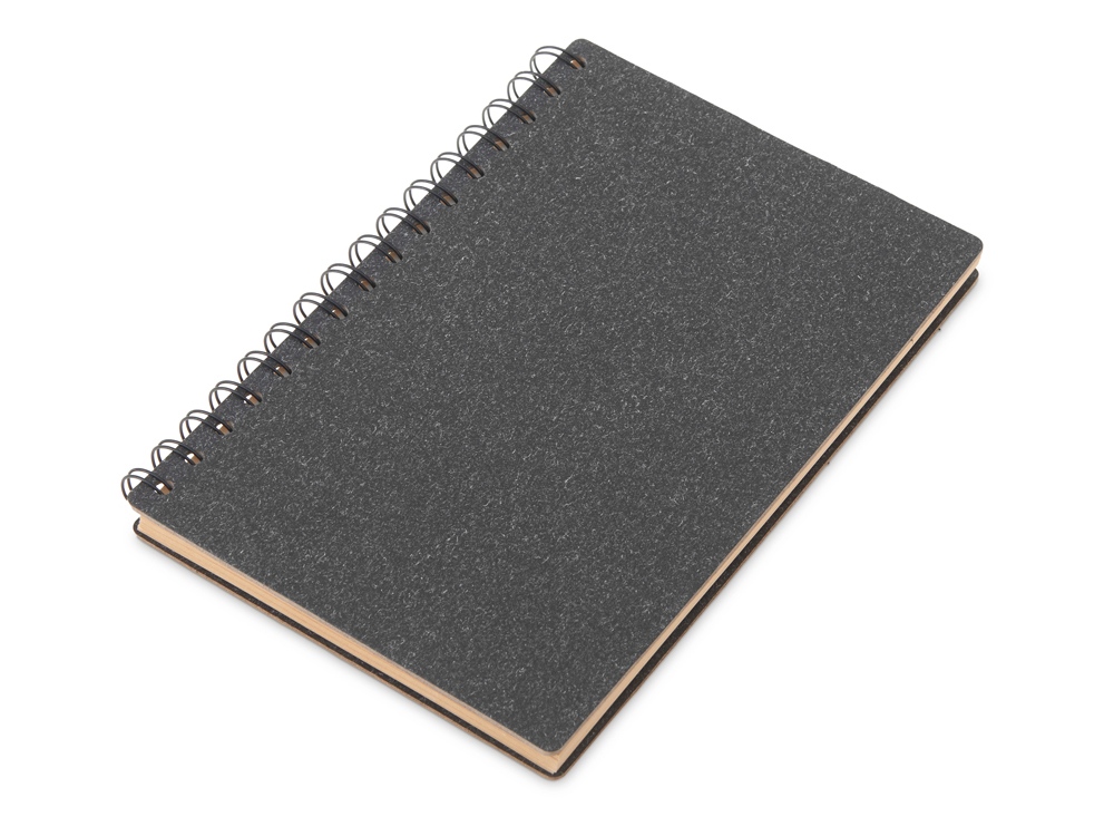 Блокнот на спирали в картонной обложке с переработанной бумагой Mania, черный купить оптом и в розницу с нанесением логотипа в Москве