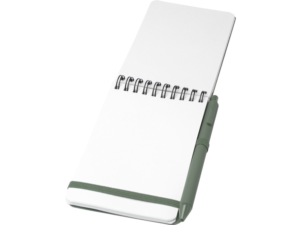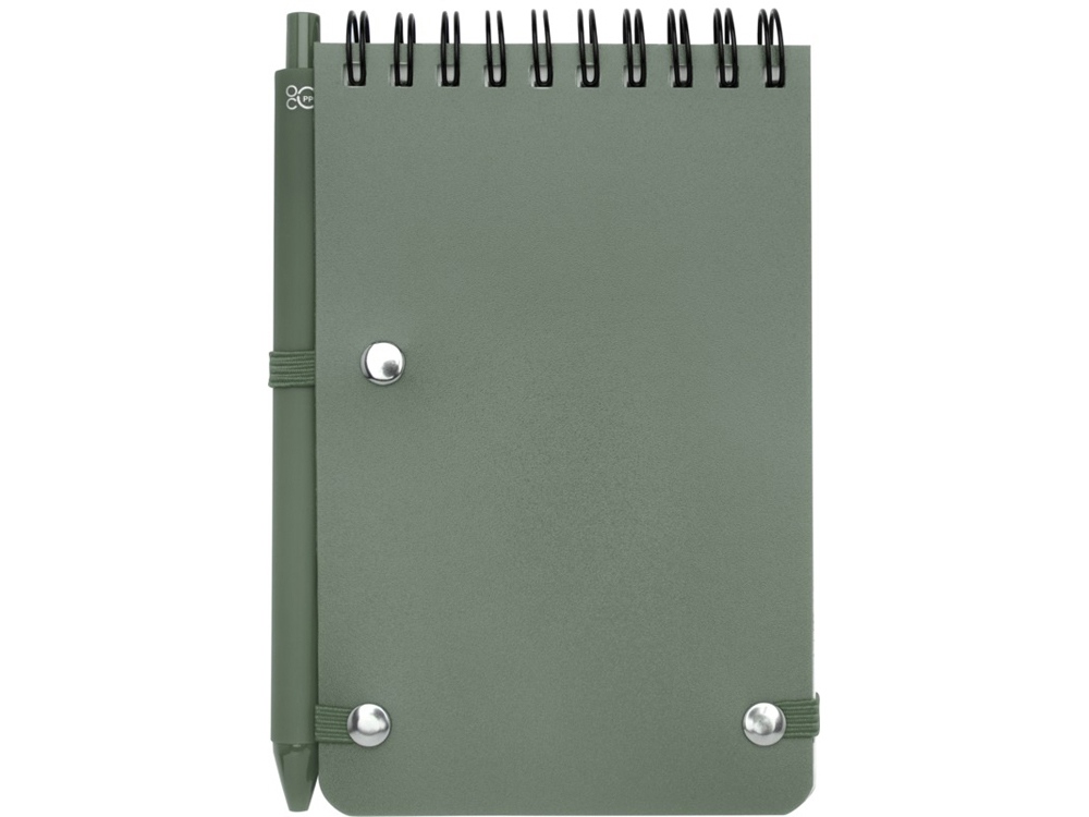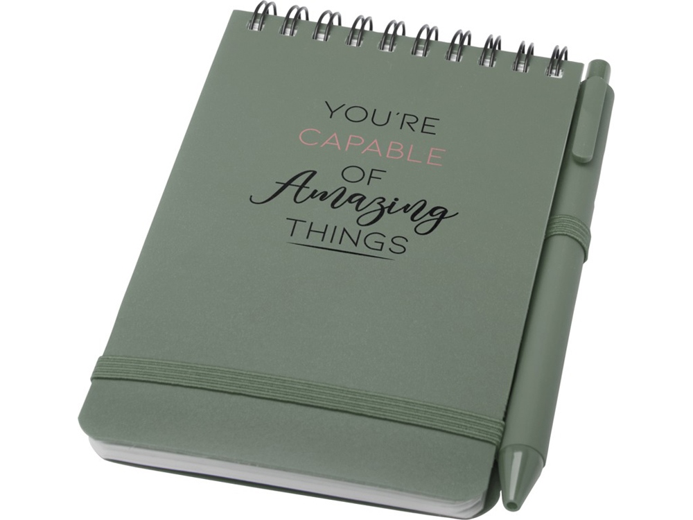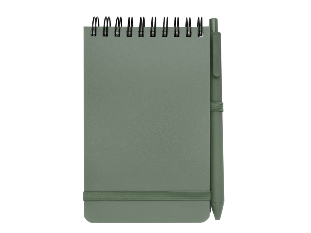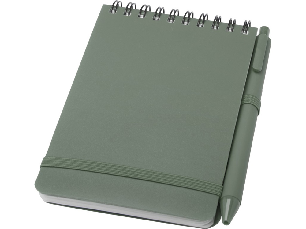 Блокнот Thalaasa формата А6 в твердой обложке из океанического пластика с шариковой ручкой - Зеленый яркий купить оптом и в розницу с нанесением логотипа в Москве