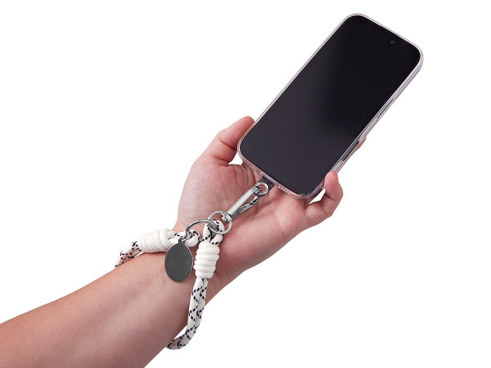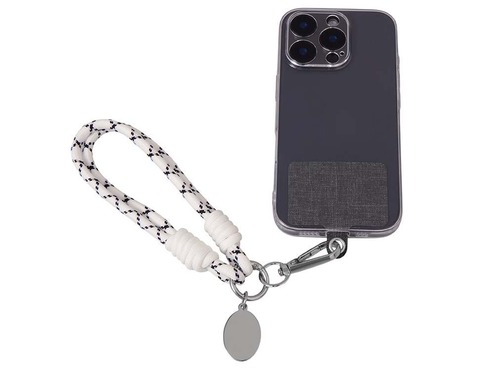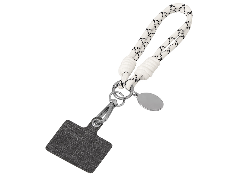 Брелок-браслет Bohemian c тканевым держателем для телефона, бело-черный купить оптом и в розницу с нанесением логотипа в Москве