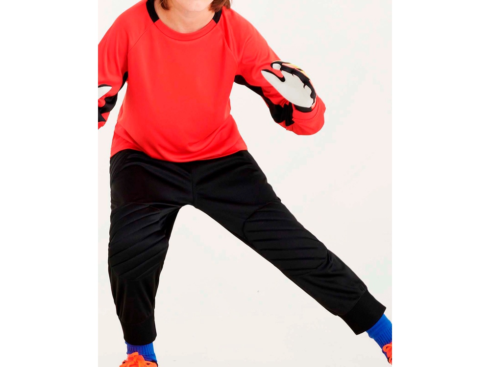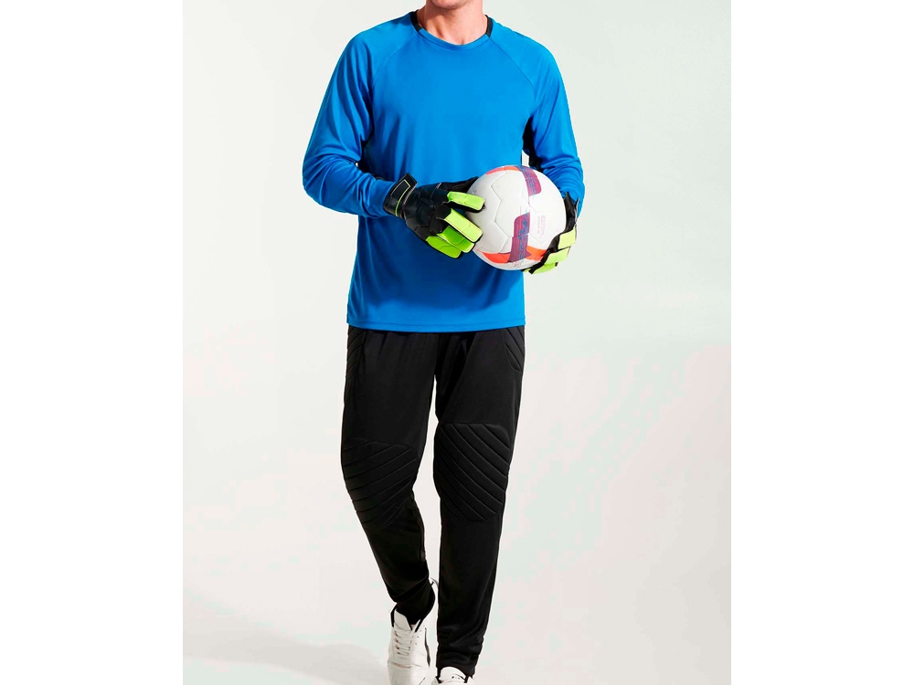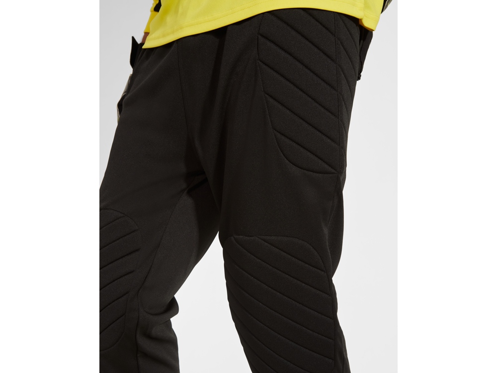 Длинные штаны вратаря унисекс. - Стеганые вставки по бокам и нашивки на коленях. - Эластичный пояс с внутренним шнурком для регулировки. - Манжеты на штанинах.