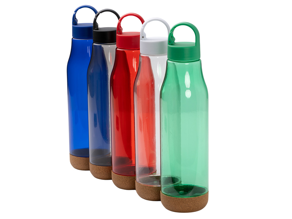 Бутылка с пластиковым корпусом и пробковым дном. Ручка для переноски с карабином на крышке. Объем: 720 мл. Упаковка: эко-дизайн.
