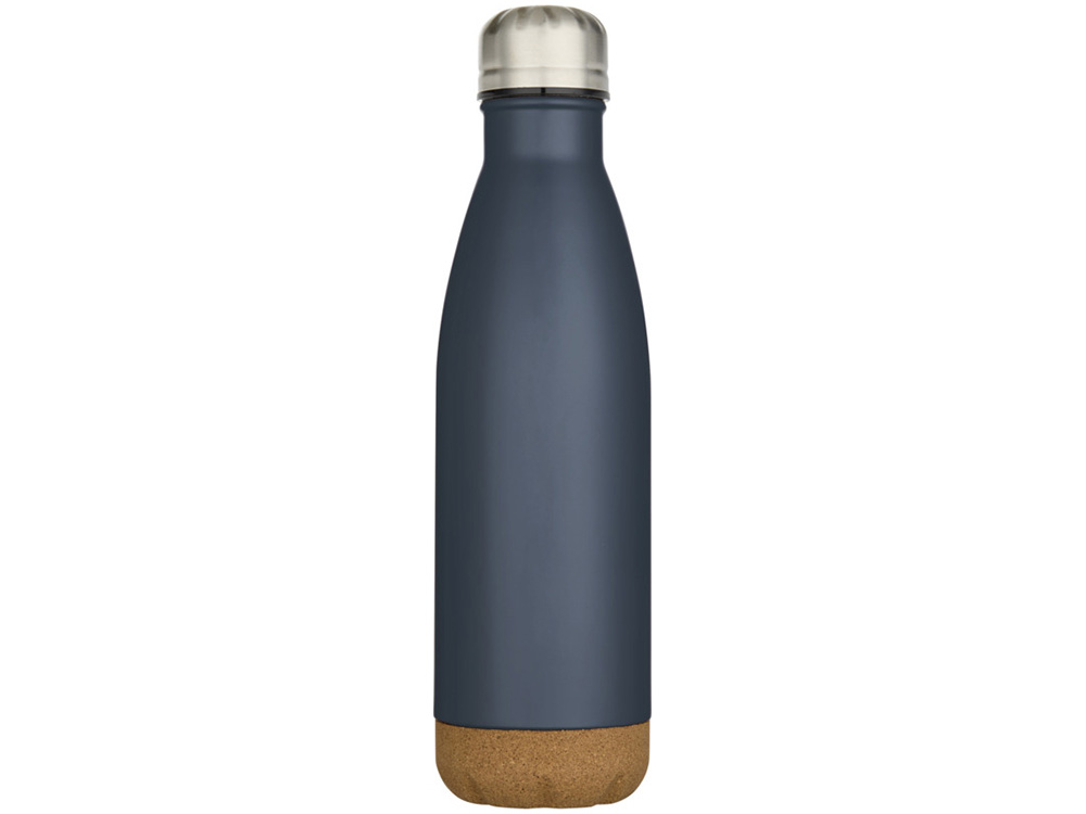 Бутылка для воды из нержавеющей стали с вакуумной изоляцией и пробковыми деталями в нижней части. Двойная изоляция стенок сохраняет напитки горячими или холодными в течение нескольких часов. Поставляется в подарочной коробке из переработанного картона. Объем: 500 мл. 90% нержавеющая сталь, 10% Пробка. упаковка FSC Mix Credit P5.1 CU-COC-877277.