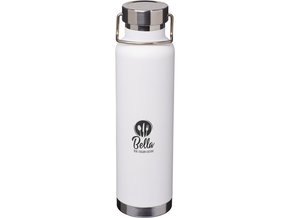 Бутылка для воды с вакуумной изоляцией Thor объемом 650 мл из переработанной нержавеющей стали, сертифицированной по стандарту RCS - Белый купить оптом и в розницу с нанесением логотипа в Москве