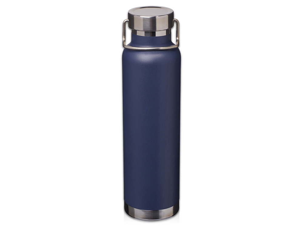 Бутылка для воды с вакуумной изоляцией Thor объемом 650 мл из переработанной нержавеющей стали, сертифицированной по стандарту RCS - Темно - синий купить оптом и в розницу с нанесением логотипа в Москве