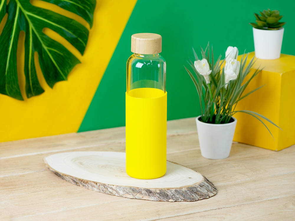 Стильная бутылка для воды сразу привлечет внимание к себе, где бы Вы ее ни достали, так как представляет собой идеальную композицию из трех экологичных материалов. Бутылка выполнена из качественного боросиликатного стекла, поэтому абсолютно не влияет на вкус и запах напитков. Силиконовый чехол поможет защитить бутылку от повреждений и легких падений, также чехол выполняет анти-скользящую функцию. Крышка выполнена из натурального бамбука. Не замораживайте и не используйте бутылку в микроволновке. Бутылка легко моется. Объем 550мл.