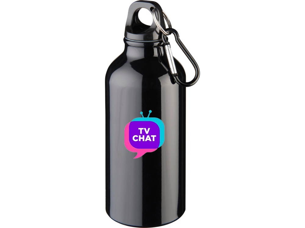 Бутылка для питья Oregon с карабином. Бутылка с одинарными стенками со съемной крышкой. Карабин не предназначен для лазанья. Объем – 400 мл. BPA Free Алюминий.