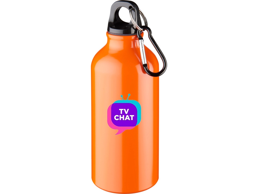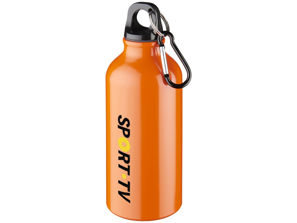 Бутылка для питья Oregon с карабином. Бутылка с одинарными стенками со съемной крышкой. Карабин не предназначен для лазанья. Объем – 400 мл. BPA Free Алюминий.