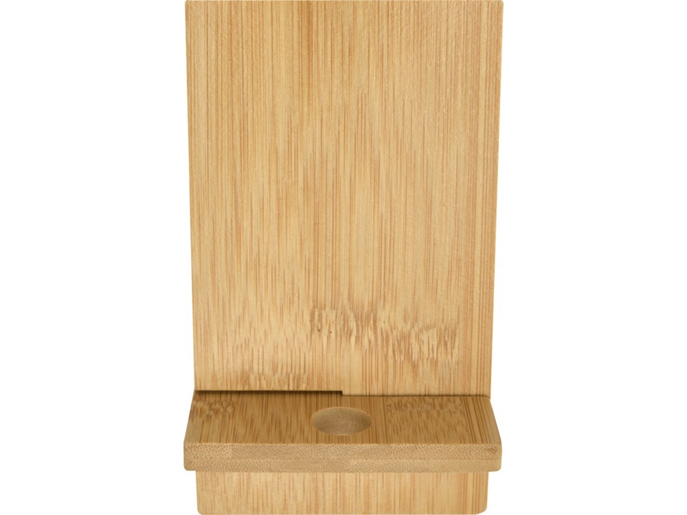 Съемная подставка для телефона Ceibo изготовлена из бамбука, полученного ответственным образом. Подставка оснащена удобным углублением для разъема кабеля, что обеспечивает легкую зарядку и надежную фиксацию устройства на месте.