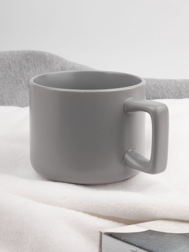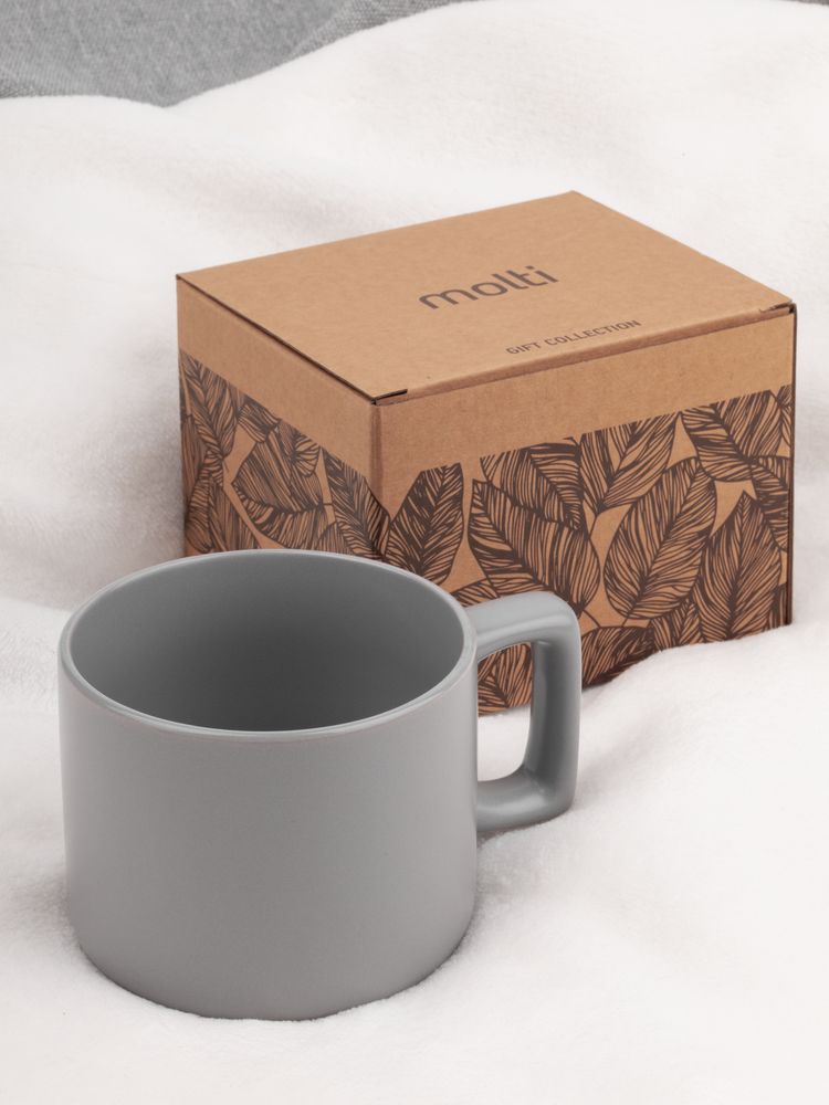 Чашка Jumbo в коробке матовая, светло-серая купить оптом и в розницу с нанесением логотипа в Москве