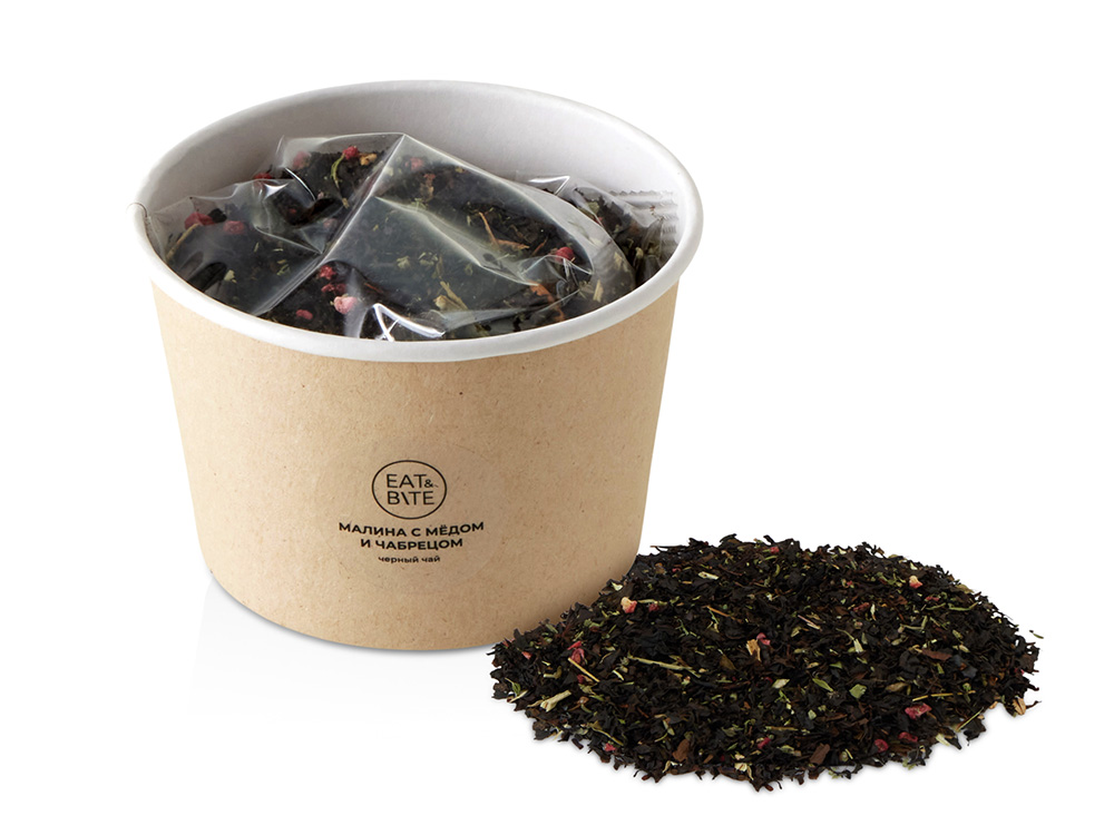 | Состав | черный чай, листья ежевики, чабрец, кусочки сублимированной малины, ароматизатор натуральный Малина, ароматизатор натуральный Мед |