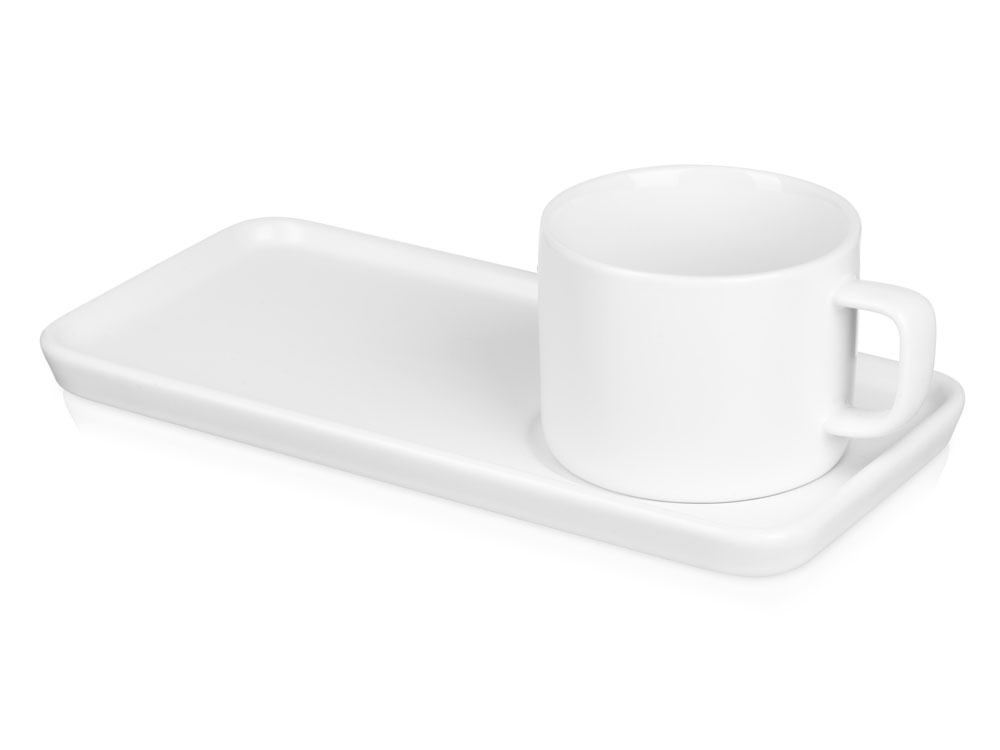 Чайная пара Bristol: блюдце прямоугольное, чашка, коробка, белый купить оптом и в розницу с нанесением логотипа в Москве