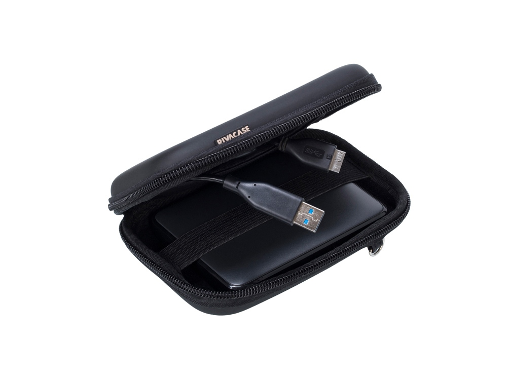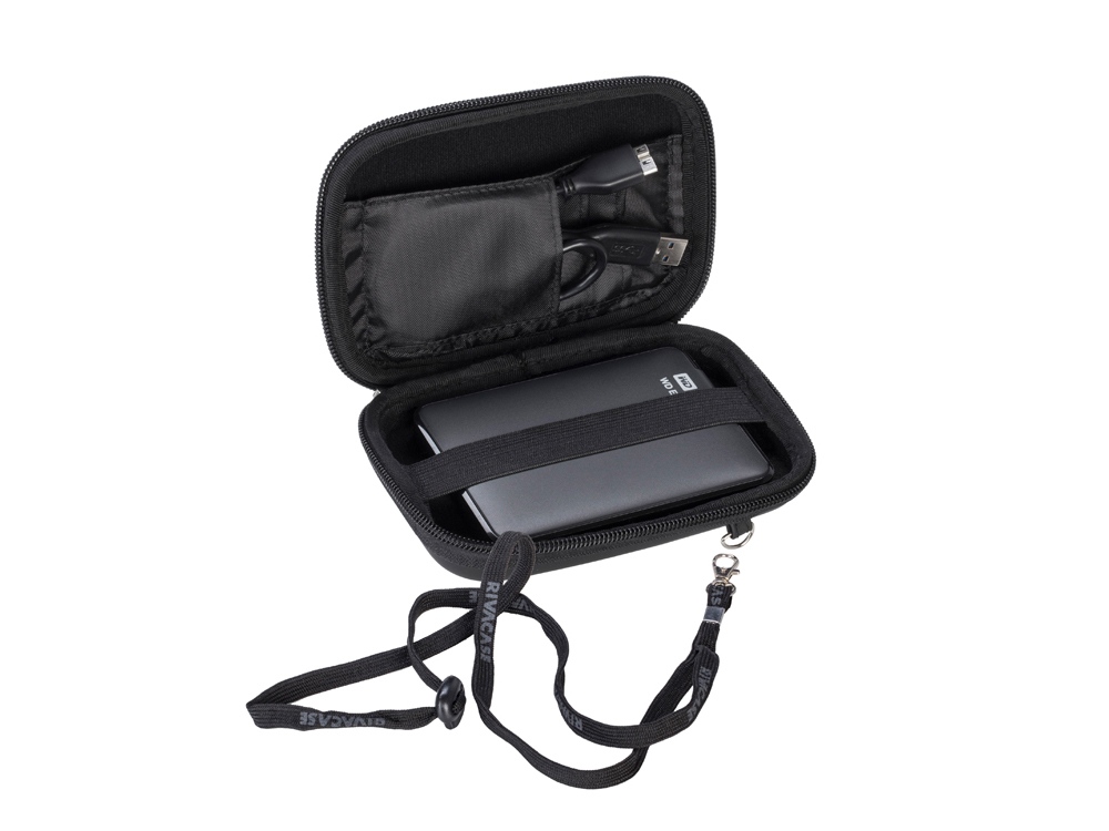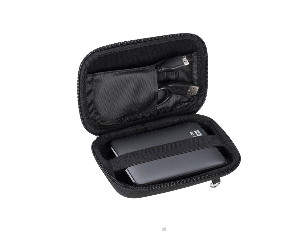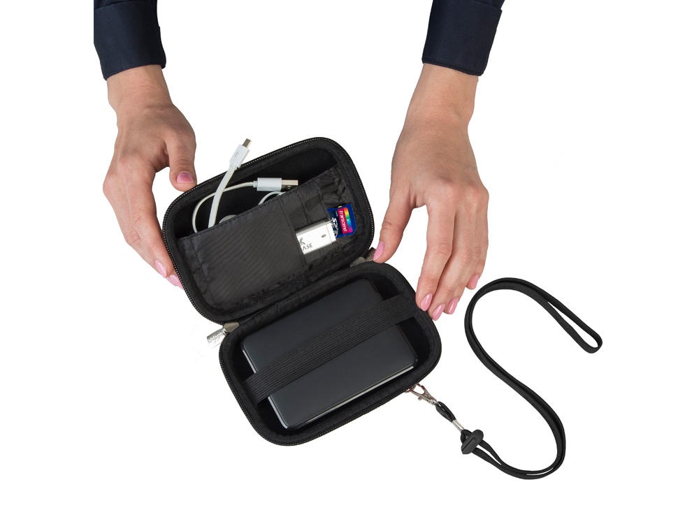 Чехол для внешнего жесткого диска (HDD). • Подходит для большинства 2.5 HDD. • Чехол создан из высококачественного материала EVA, он надежно защищает от внешних воздействий, случайных ударов и царапин, а также от пыли и влаги. • Предусмотрена возможность крепления на поясном ремне. • В комплекте ремень для ношения чехла на плече или на шее. • Устройство надежно крепится внутри чехла специальной фиксирующей лентой, кроме того предусмотрены дополнительные внутренние карманы для кабеля, карт памяти и аксессуаров. • Двойная застежка молния для удобного доступа к устройству.
