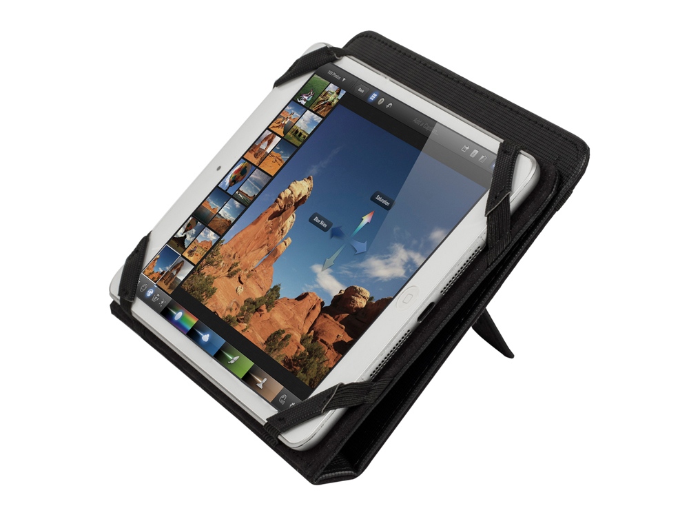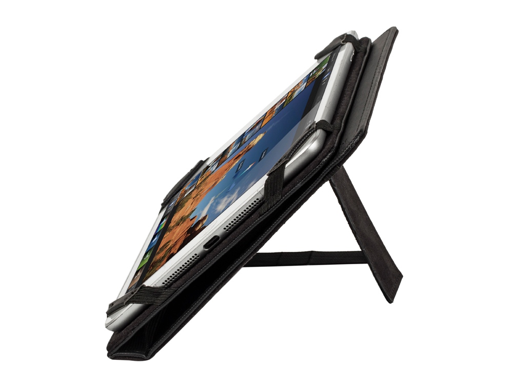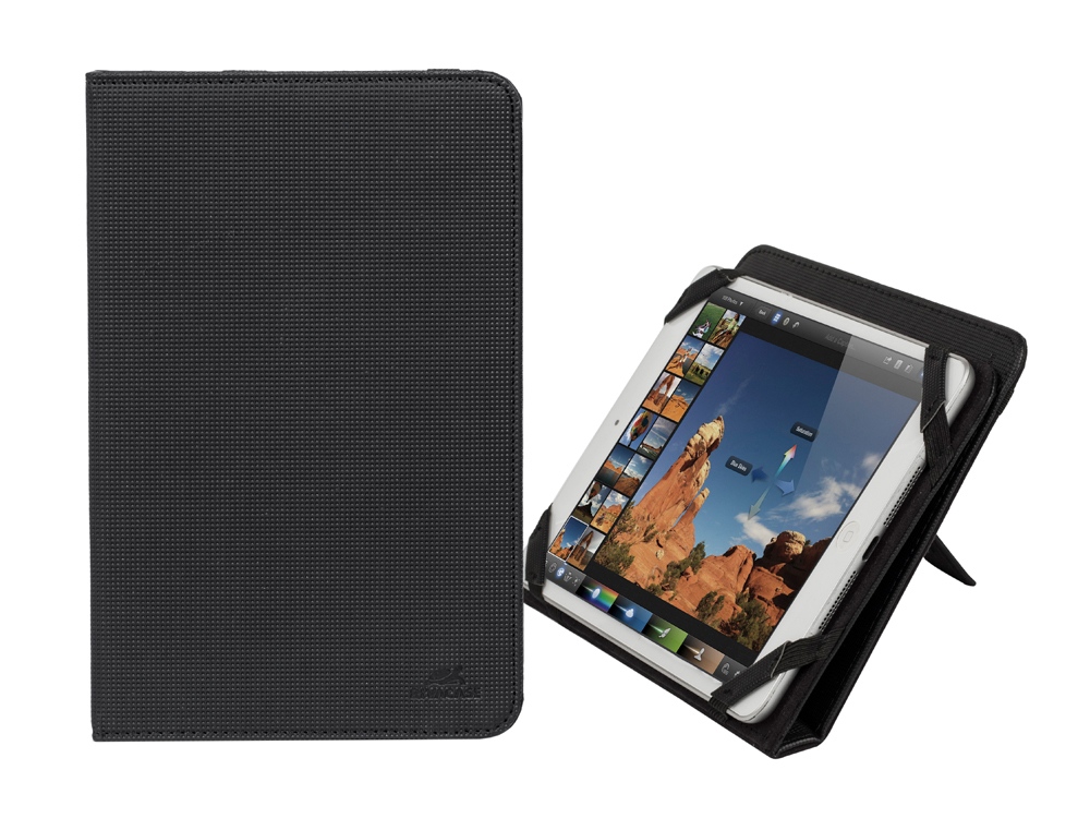 Чехол для планшетов до 8''. • Универсальный чехол для планшетов до 8 (Apple iPad mini 4 / Asus VivoTab 8 M81C / Asus ZenPad 8.0 Z380CX / Lenovo TAB 2 A8-50F / Samsung Galaxy Tab A 8.0 SM-T355 / Galaxy Tab S2 / Sony Xperia Z3 Tablet Compact). • Чехол выполнен с использованием различных материалов: - материал верха - высококачественный полиуретан; - внутренний материал контактирующий с тачскрином - микрофибра. • В качестве крепления используется высококачественная эластичная лента с противоскользящей накладкой. Легко устанавливать и вынимать планшет. • Планшет фиксируется в одном положении в режиме просмотра с помощью специальной подставки. Подставка, когда не используется, удерживается на внутренней стороне чехла с помощью магнита, не царапая корпус планшета. • Эластичная лента фиксирует чехол в закрытом состоянии. • Свободный доступ ко всем кнопкам, разъемам и динамикам. Мин. / Макс. внутренний размер (мм): от 115 х 195 / до 138 х 213