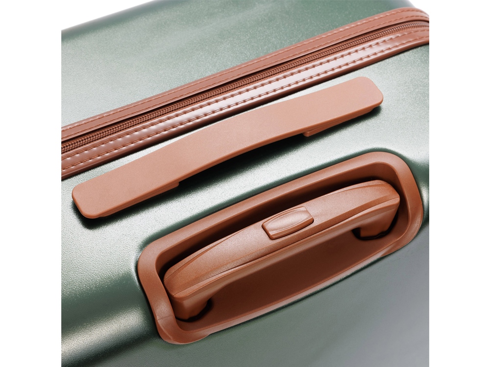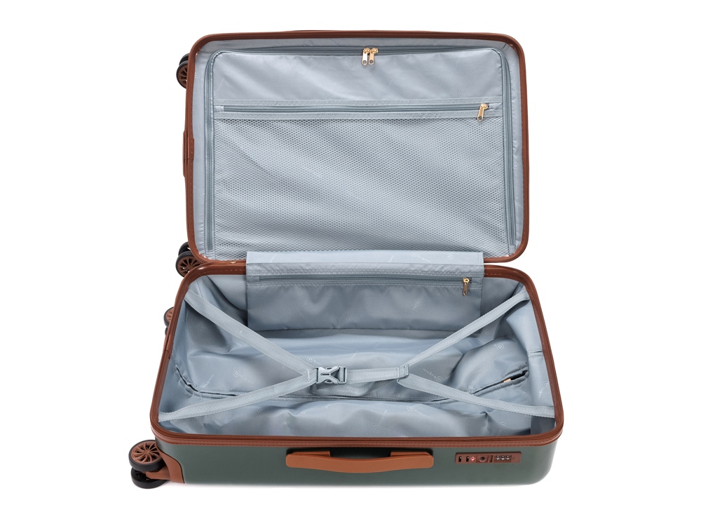 AMELIA - невероятная коллекция чемоданов в ретро стиле. Приглашаем вас в мир изящной элегантности и практичной изысканности - в мир потрясающей коллекции чемоданов AMELIA. Наши чемоданы – не просто средства для путешествий, это искусно созданные аксессуары, воплощающие утонченный стиль и комфорт. AMELIA воплощает собой неповторимый образ, сочетающий эстетику ретро с современной функциональностью. Вся товарная линейка представлена в великолепных темно-изумрудном и кремовом оттенках. Контрастные детали насыщенного коричневого цвета, бронзовые ручки и фурнитура идеально дополняют дизайн, подчеркивают индивидуальность и выразительность каждой модели. Изготовленные из высококачественного АБС-пластика и поликарбоната, чемоданы AMELIA обладают удивительной прочностью и легкостью. Четыре резиновых колеса с бесшумным ходом и возможностью поворота на 360° обеспечивают плавное передвижение по любой поверхности, сохраняя при этом полную маневренность. Интегрированный замок TSA с трехзначным кодом гарантирует защиту вашего багажа от несанкционированного доступа. Продуманная концепция больших отделений с перегородкой на молнии и дополнительными карманами максимально оптимизирует использование внутреннего пространства. Легкая телескопическая ручка с несколькими положениями фиксации обеспечивает комфорт в использовании для людей разного роста. Удобные ручки сбоку и на дне корпуса облегчают загрузку и выгрузку чемодана. Боковые держатели позволяют разместить дополнительные дорожные аксессуары. Коллекция чемоданов AMELIA – это виртуозное сочетание эксклюзивного дизайна, комфорта и надежности, созданное для тех, кто ценит эстетику и функциональность в каждом своем путешествии. СВОЙСТВА Внутренняя организация: основное отделение на молнии с 2 отсеками, сетчатой перегородкой с карманом на молнии, дополнительным карманом на молнии и 2 фиксирующими ремнями. Внешняя организация: телескопическая ручка, интегрированный кодовый замок TSA, 4 двойных колеса, боковая ручка, ручка на дне, боковые держатели. Размер: 42 х 24 х 67 см Объём: 55 л Вес: 3,70 кг Материал: Поликарбонат / АБС-пластик