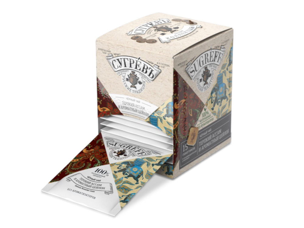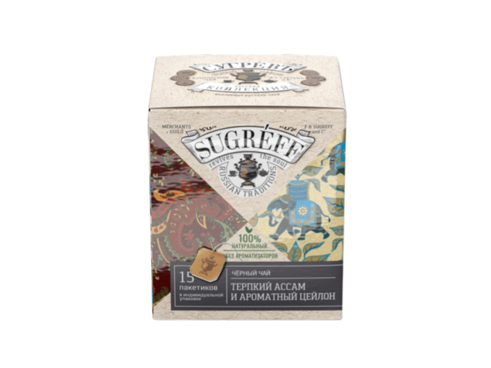 Черный чай Терпкий Ассам и ароматный Цейлон в индивидуальном саше конверте, 15 пакетиков купить оптом и в розницу с нанесением логотипа в Москве