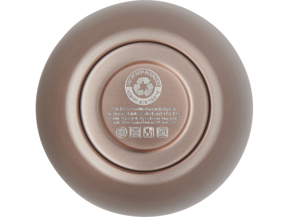 Corzo изготовлен из нержавеющей стали, сертифицированной RCS, и имеет вакуумную конструкцию с двойными стенками и медной изоляцией, которая сохраняет напитки горячими в течение 6 часов или холодными в течение 24 часов. Конструкция препятствует образованию конденсата на внешней стороне чашки. Стакан с нажимаемой крышкой прост в использовании. На наружный корпус нанесено порошковое покрытие. Широкое горлышко для комфортного наполнения и заливки. Объем 350 мл. Поставляется в подарочной коробке из переработанного картона. Recycled stainless steel.