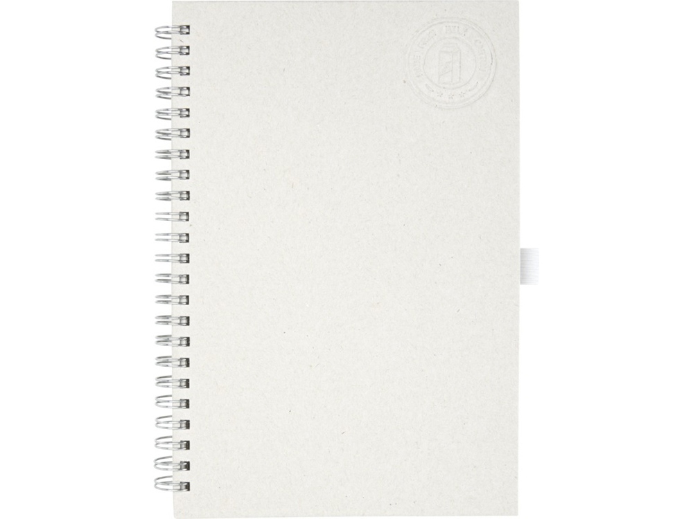 Блокнот на спирали формата A5 для заметок с 70 линованными листами плотностью 80 г/м², изготовленный из переработанных картонных коробок из-под молока (до 70%). Картонные коробки из-под молока собираются, сортируются, перерабатываются и превращаются в бумагу, таким образом действительно превращая мусор во что-то полезное.