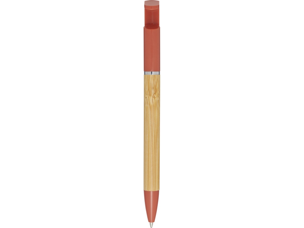 Бамбуковая шариковая ручка, которая также может служить подставкой для телефона. Кнопка и среднее кольцо изготовлены из переработанного пластика, наконечник — из латуни, а корпус — из бамбука, полученного из ответственных источников. Цвет чернил: черный. Длина непрерывной линии: 1000 метров. Размер пера: 1,0 мм. FSC certified bamboo. FSC Mix Credit N5 CU-COC-877277.