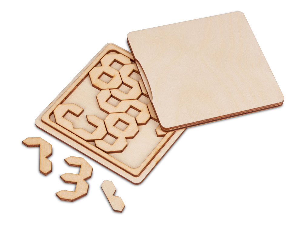 Деревянная головоломка Цифры - прекрасный способ занять себя в дороге. Корпус изготовлен из берёзовой фанеры и используется как игровое поле, не занимая много места в сумке. Задача и простая и сложная одновременно - сложить все цифры в квадратном игровом поле так, чтобы они не накладывались друг на друга. Крупные детали (длина 3 см) сделают игровой процесс удобным и приятным. - развивающая игра; - натуральный материал; - компактный размер; - удобно играть в дороге.