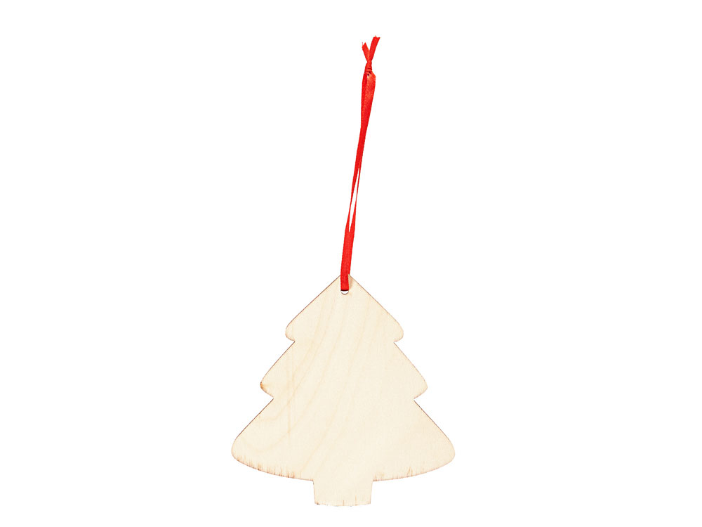 Деревянное новогоднее украшение на красной ленте для подвешивания.
