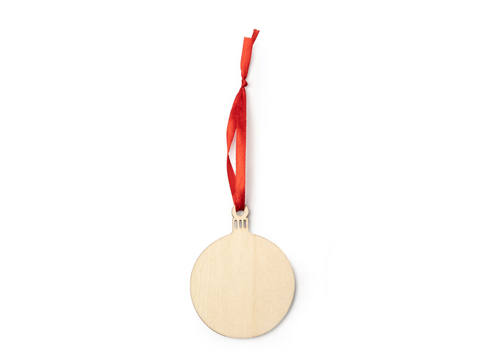 Деревянное новогоднее украшение на красной ленте для подвешивания.
