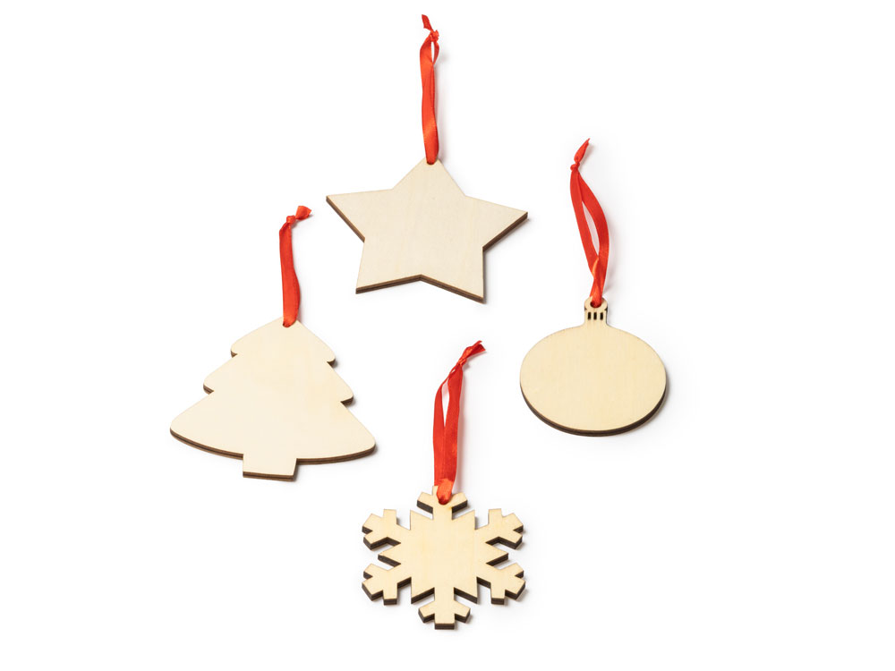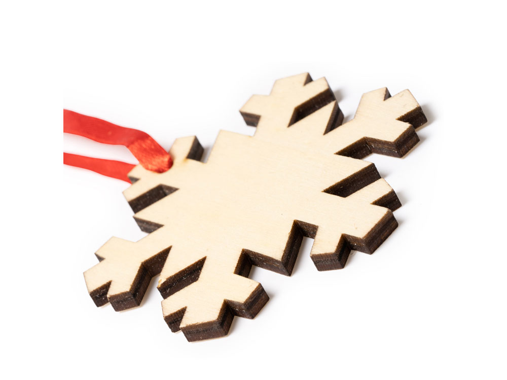 Деревянное новогоднее украшение на красной ленте для подвешивания.