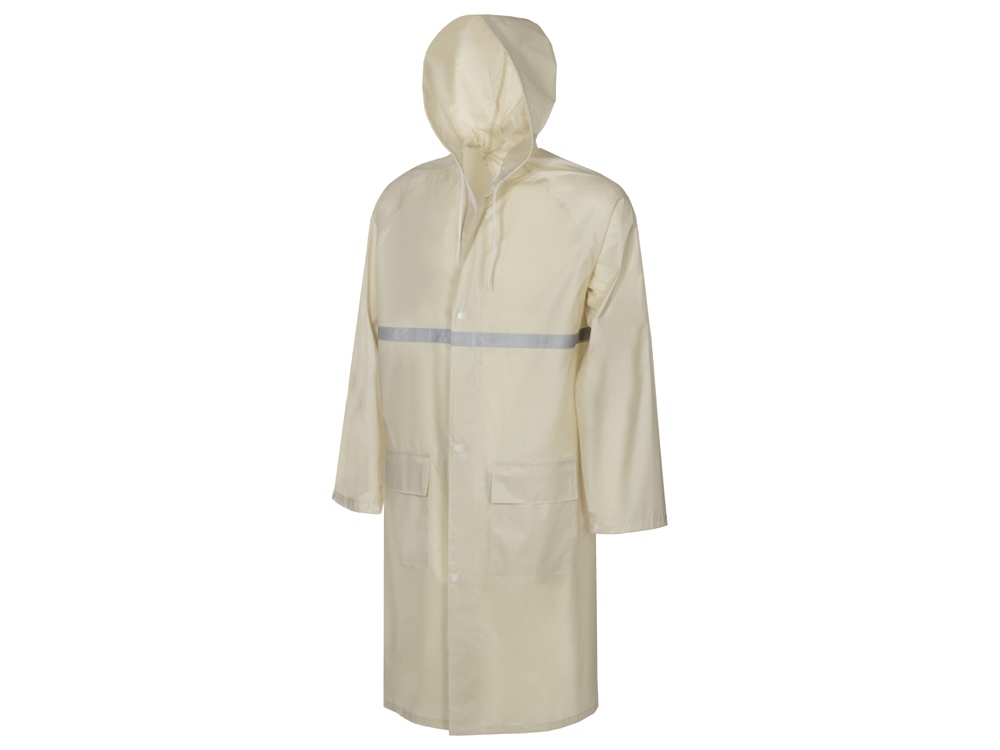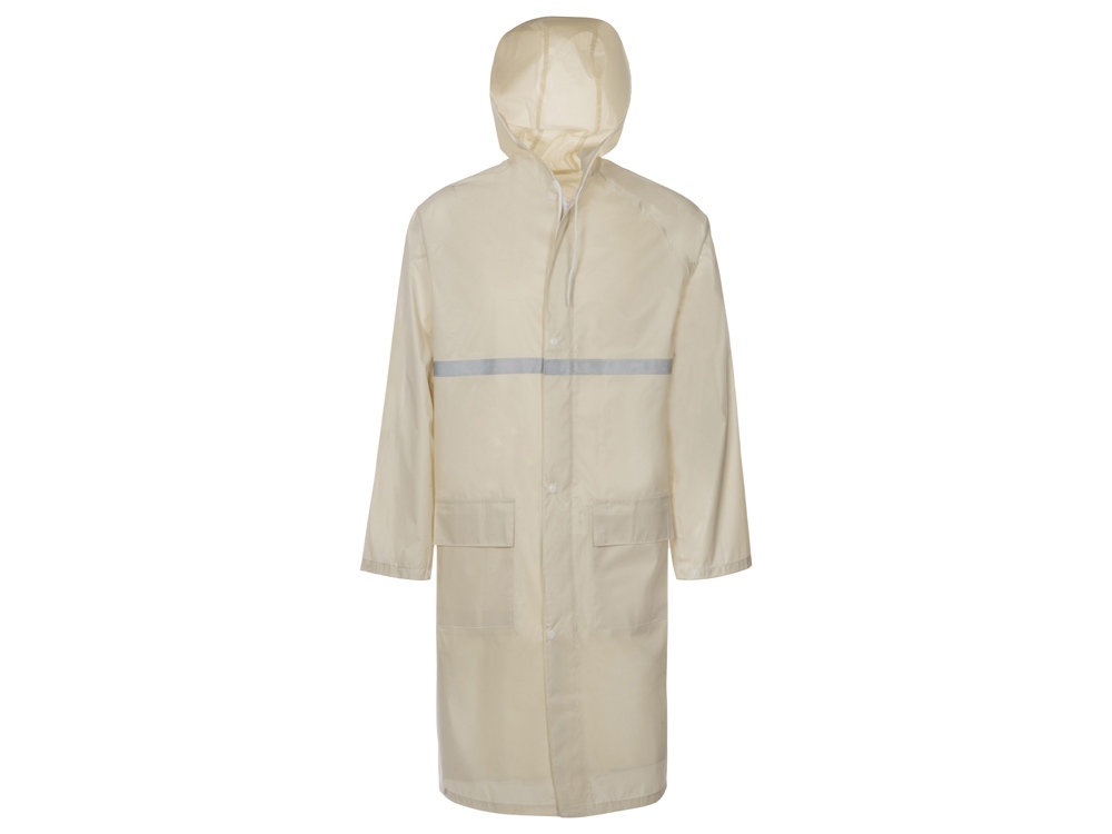 Длинный дождевик выполнен из полиэстера с водоотталкивающей пропиткой. Застегивается на молнию, поверх которой — планка на кнопках, что дополнительно защищает от ветра и промокания. Посадку капюшона можно регулировать при помощи шнурка, ширина рукава регулируется кнопкой. Светоотражающая тесьма на груди и спине делает человека в плаще заметным даже в темное время суток. Вместительные накладные карманы защищены сверху клапаном. Дополнительная проклейка швов дождевика обеспечивает большую степень водонепроницаемости. - водонепроницаемость обеспечивается водоотталкивающей пропиткой материала и дополнительной проклейкой швов - светоотражающие элементы делают человека заметным в темное время суток - вместительные накладные карманы