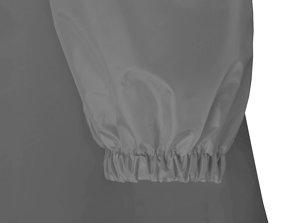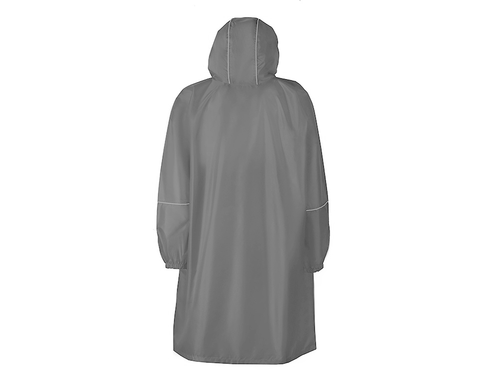 Дождевик - пончо прямого силуэта. Нагрудный карман плаща закрывается на молнию, которая дополнительно защищена клапаном, а еще в него можно полностью убрать дождевик. На дне кармана — ручка-петелька, которая в сложенном виде может использоваться для подвешивания. Швы капюшона и рукавов отделаны светоотражающим кантом, который делает человека заметным даже в темное время суток. Для комфортной посадки — затягивающийся на шнурок капюшон с фиксатором и манжеты на резинке.