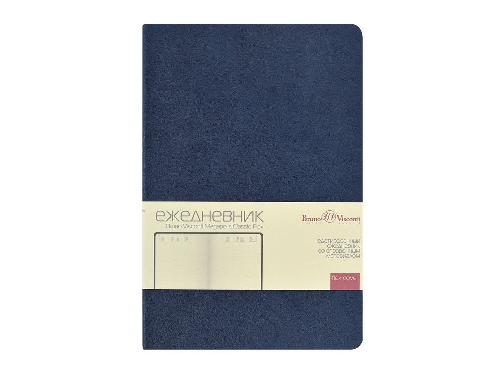 Классическое воплощение минимализма: формат А5, гибкая обложка, скругленный угол блока и обложки, ровные, четкие линии, отсутствие декоративных элементов. Внутренний блок изготовлен из бежевой бумаги плотностью 70 г/м2 и, помимо раздела для планирования рабочего времени, включает в себя 12 страниц справочной информации. Функциональность и эргономичность — это то, что отличает недатированный ежедневник Megapolis Classic Flex ТМ Bruno Visconti от всех других ежедневников.