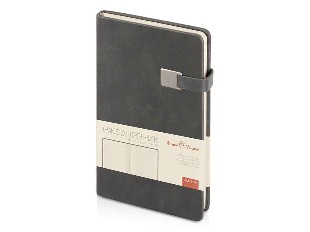 Недатированный ежедневник Premier формата А5 (125х208 мм) от Bruno Visconti - удобный и функциональный в эксплуатации. Твердую обложку из высококачественной искусственной кожи дополняет металлический хлястик на магните. Ляссе в цвет обложки позволяет быстро найти нужную страницу. Блок в 272 страницы произведен из бежевой бумаги плотностью 70 г/кв.м и имеет раздел справочной информации на 19 страницах. Для удобства навигации все углы блока перфорированы, имеют скруглённую форму.